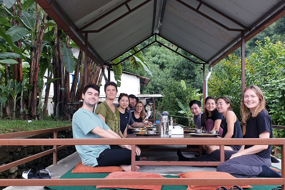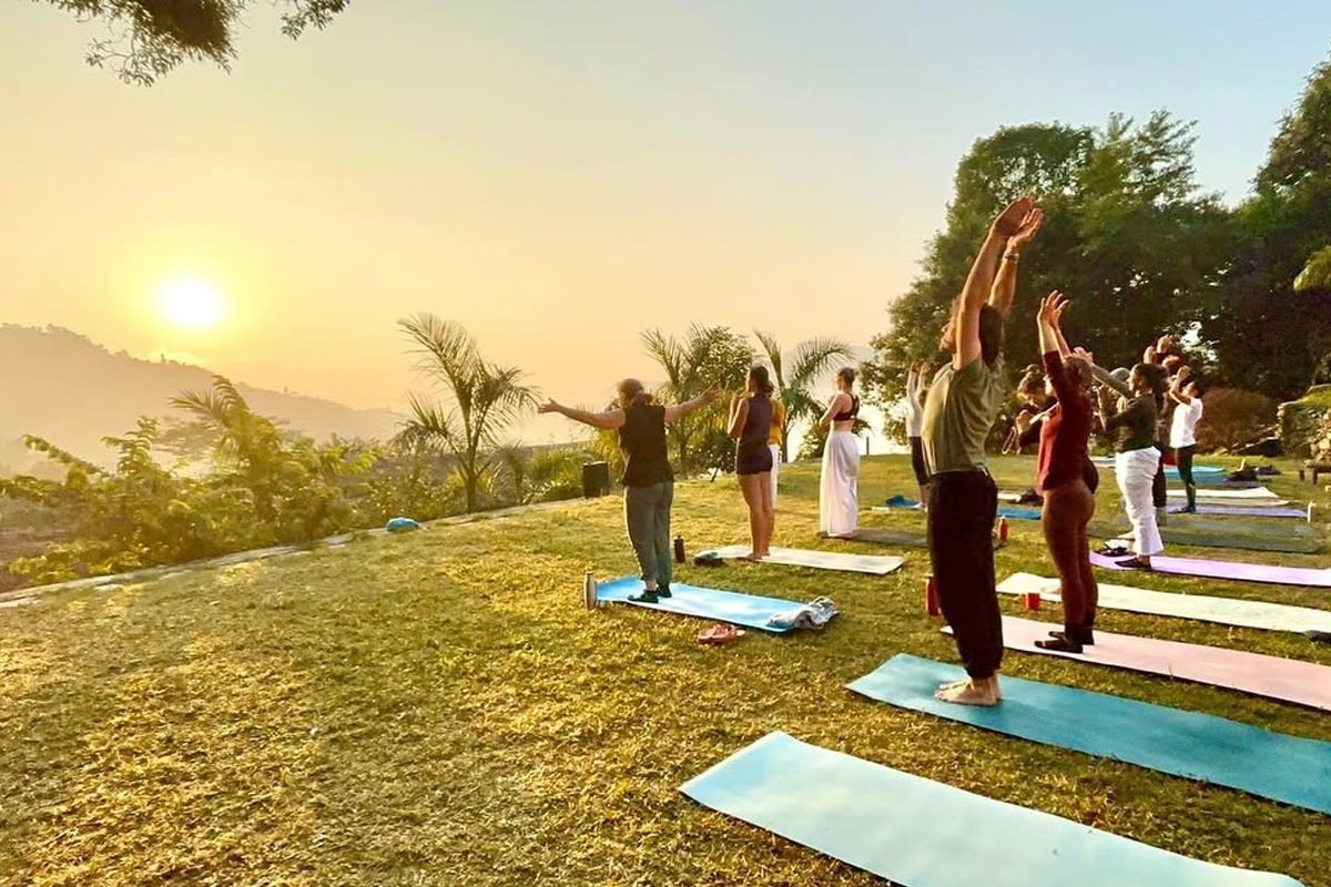 Guests will also enjoy deeply relaxing bodywork through traditional Indo-Thai massage, designed to release tension, improve energy flow, and restore physical vitality. Beyond the yoga space, the retreat invites you to explore Nepal’s natural beauty through soulful experiences. Trek through the peaceful Himalayan foothills and spend a magical overnight stay at Australian Camp, where the mountains reveal their quiet grandeur.
